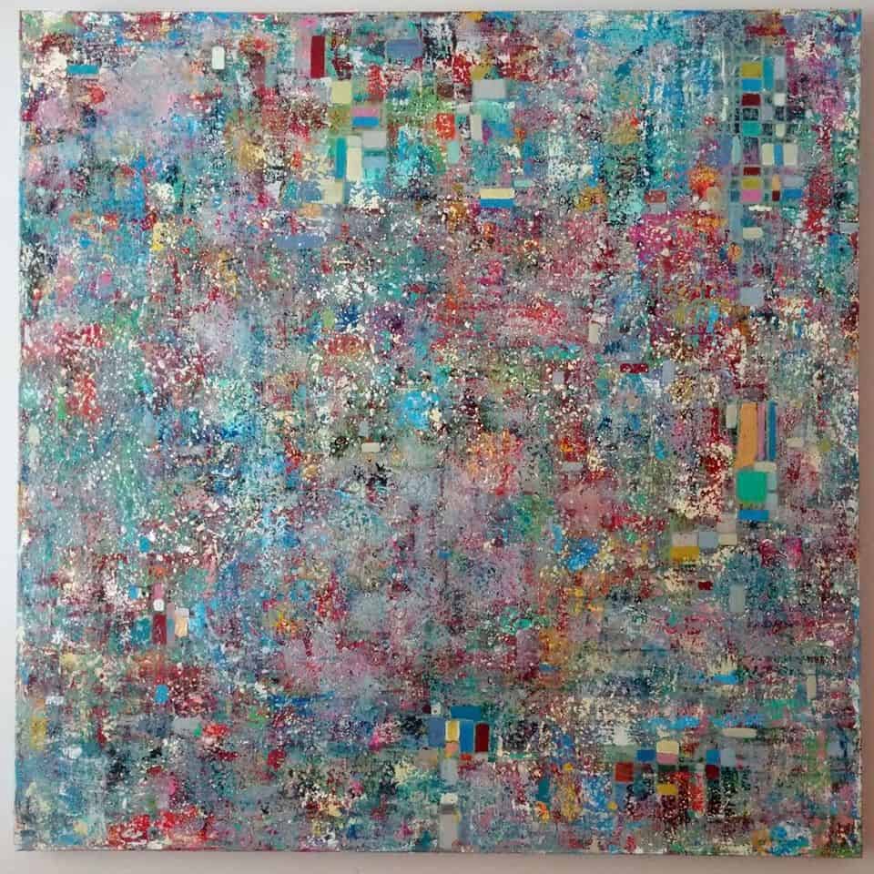 When nature and city life collide, the result is a fusion of energy and peace. The featured image above shows a close-up of the process, where I used a palette knife to layer and move color across the canvas. With the client’s request for color and calm in their entryway, this piece emerged as the perfect balance, offering a serene yet vibrant atmosphere.